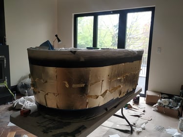 Stěna plná zlata. Jedná se o velice důmyslnou a precizní práci se zlatými plátky, kdy žlábky představují velikou výzvu.
