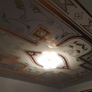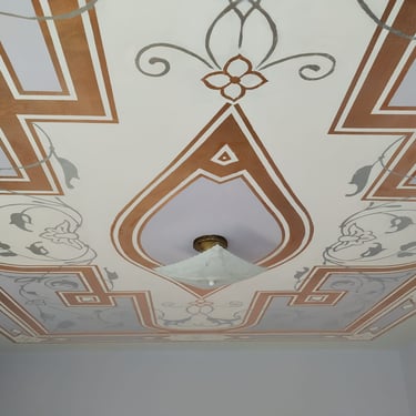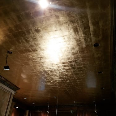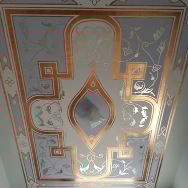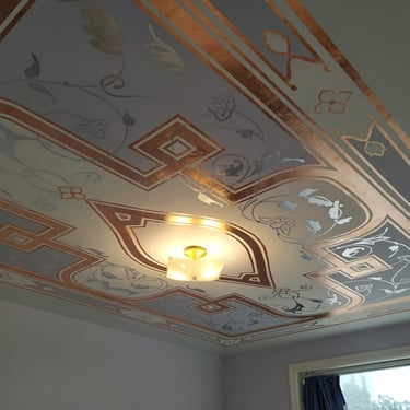 Viktoriánský strop ze stříbrných a bronzových plátků bez šablony. Vše dělané rukou a dle mé představivosti.