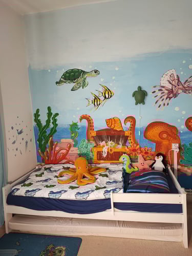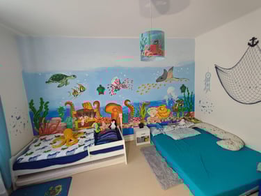 Chci vytvářet dětský svět mezi čtyřmi stěnami, abych těm našim ratolestem přinesla co nejvíce radosti do jejich srdcích. Především vnímám, jak je důležité, aby děti s hrdostí mohly ukazovat své vymazlené doupátka svým kamarádům. Pevně věřím, že interiér ovlivňuje jejich každodenní nálady, rozvoj a hlavně spánek. Proto se snažím vytvořit prostředí, které podporuje jejich kreativitu, fantazii a pohodu. Moje malby mají hravý a barevný styl, který přináší do pokojíčků život a energii. Snažím se vyjádřit osobnost a zájmy dětí prostřednictvím malířských motivů, které je osloví. Tím jim chci dopřát ještě větší radost a šťastné dětské dny.