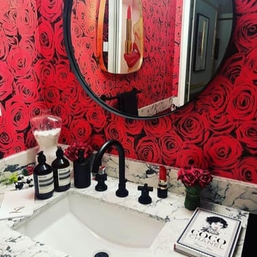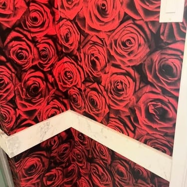 Klientka zvolila odvážné rudé růže do koupelny a opravdu se to vyplatilo. Tato "dámská toaleta mě uchvátila a mám vždy radost, když mohu dělat něco nevšedního.